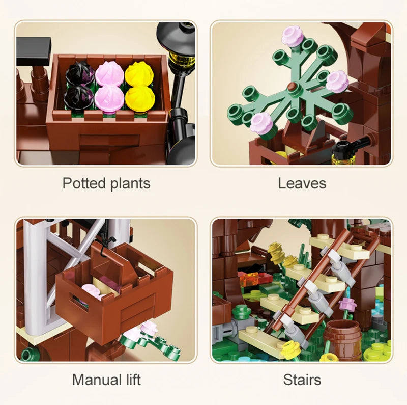 Transformez votre passion pour la construction en une véritable évasion sensorielle avec cette cabane perchée dans un arbre. Composée de 1155 pièces, elle vous transporte dans un monde bucolique où le printemps, l’été, l’automne et l’hiver s’expriment à travers un décor évolutif. Grâce à son kit de lumière USB à 8 modes, cette maquette prend vie de jour comme de nuit, créant une ambiance féerique dans votre intérieur.