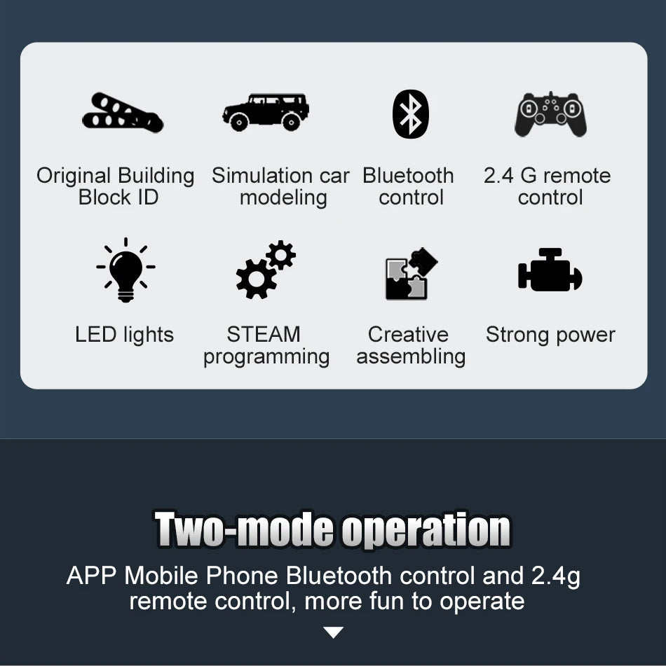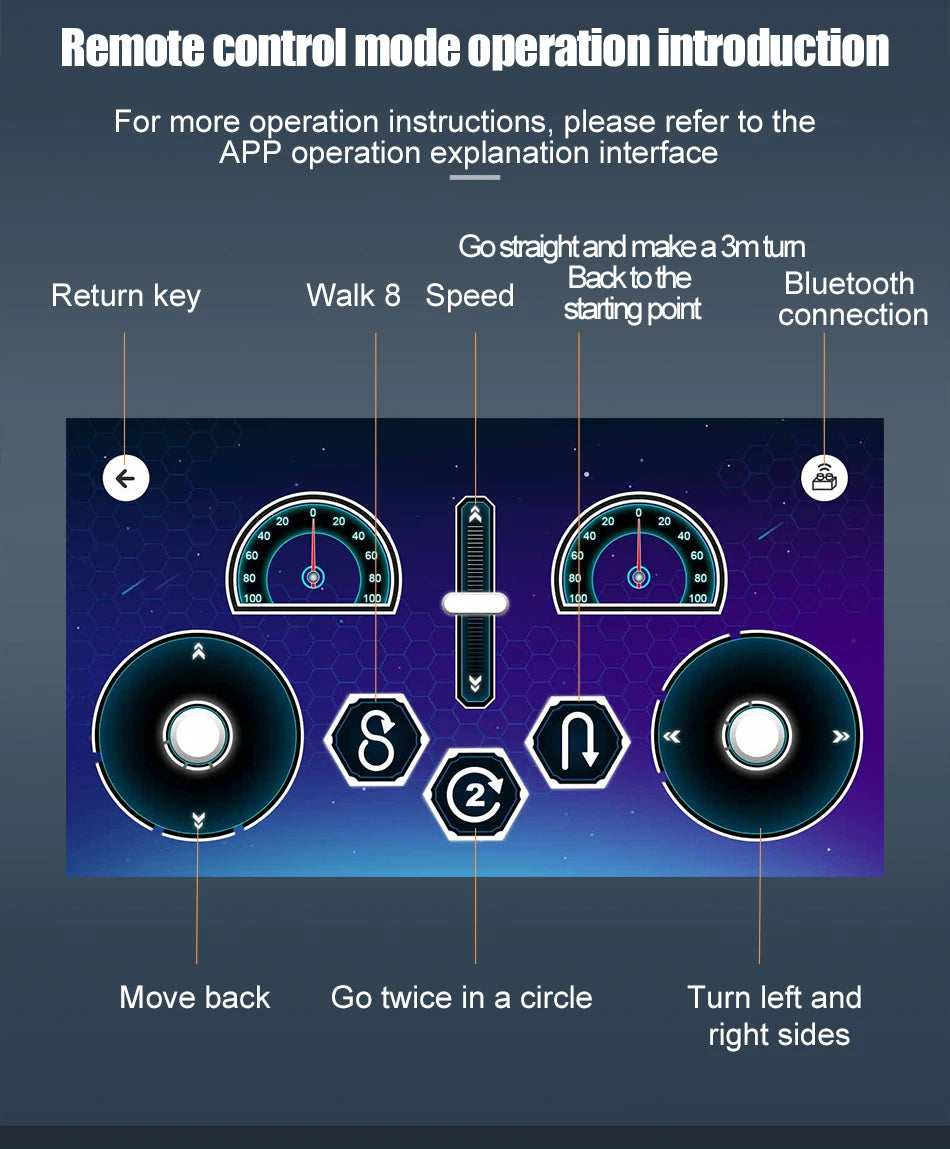 Contrôle double : télécommande 2.4GHz + application mobile Bluetooth (iOS & Android)