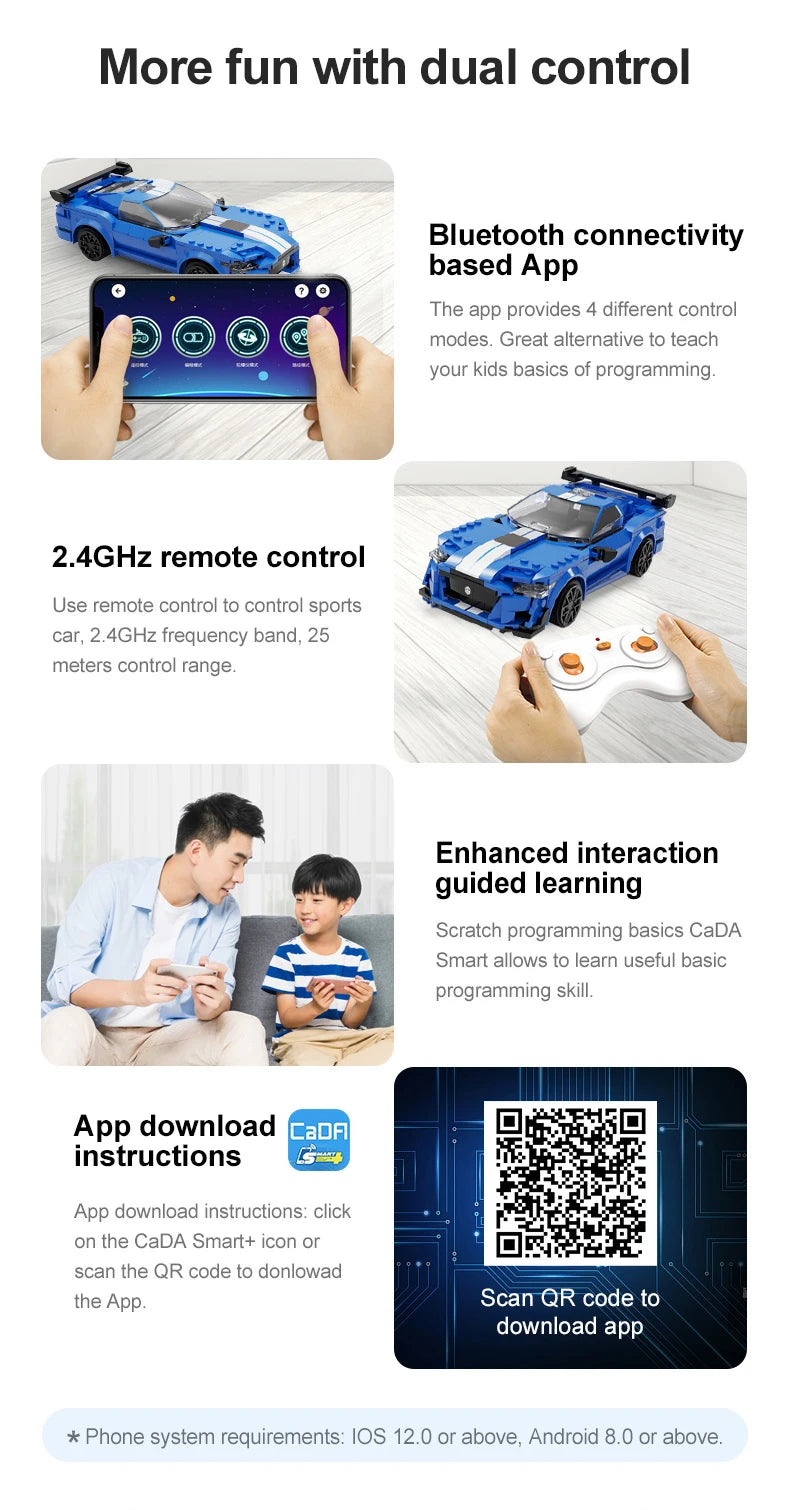 Voiture de Course Télécommandée CaDA – Modèle Blue Knight (325 pièces)