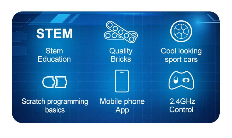 La CaDA Blue Knight, c’est le parfait équilibre entre performance et design. Avec ses 325 pièces compatibles LEGO®, cette voiture de course bleue à bandes blanches est à assembler soi-même pour une expérience immersive de construction et de pilotage. Grâce à sa télécommande intuitive et sa compatibilité avec les smartphones via Bluetooth, la Blue Knight vous propulse dans l’univers des sports mécaniques.