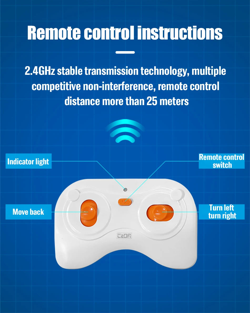 Télécommande incluse : pilotez la voiture à distance grâce à la manette intuitive.