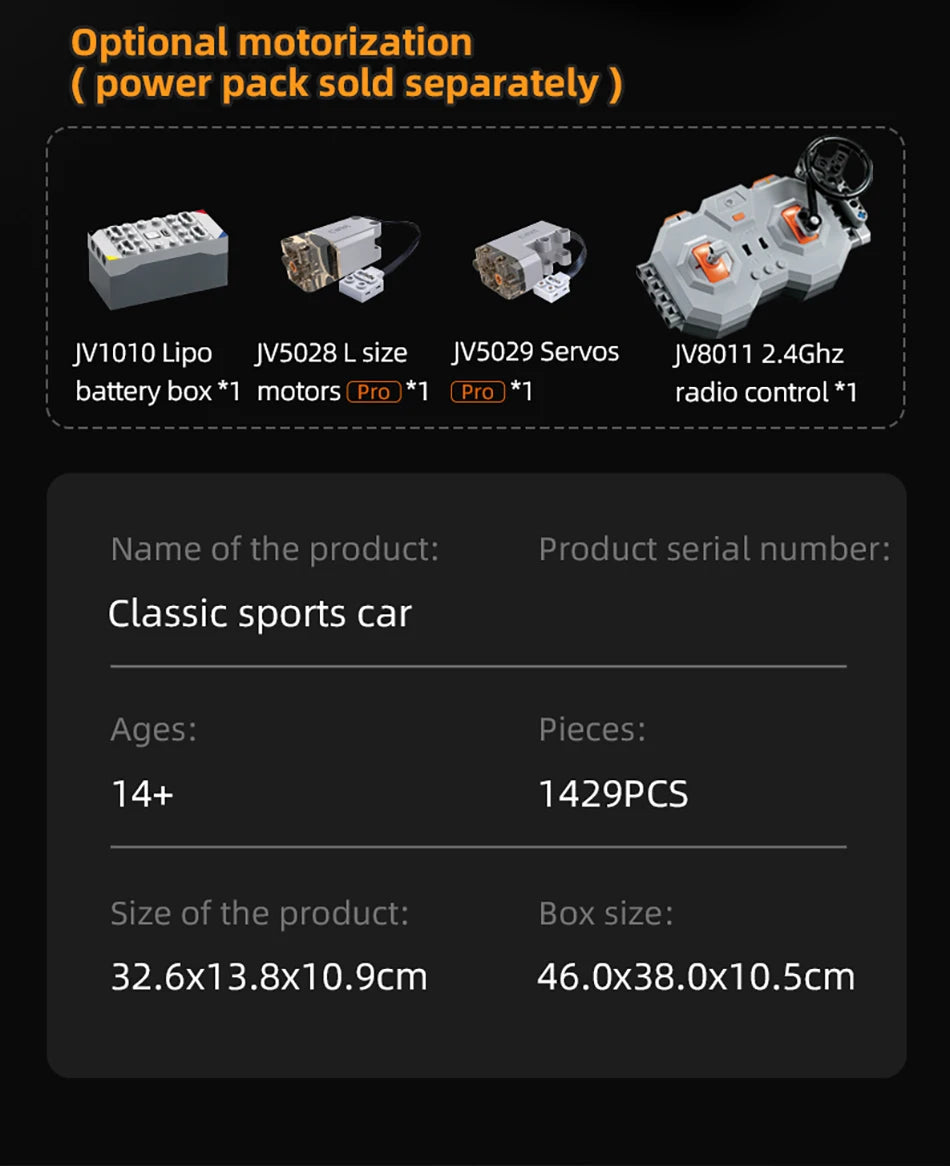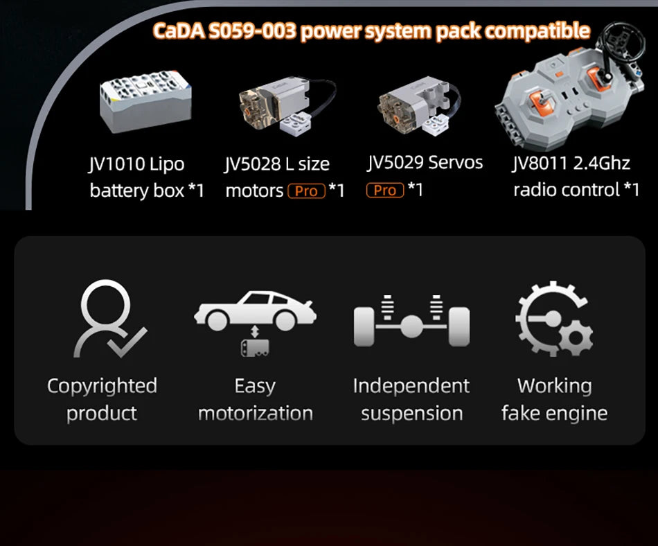 Voiture de Sport Classique CaDA – Kit Télécommandé à Construire (1429 pièces, Échelle 1:12.5)